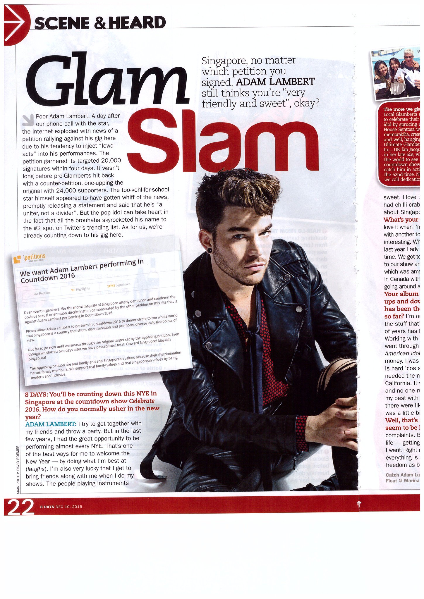 - Adam Lambert fans have counter petition to fight campaign against Singapore show